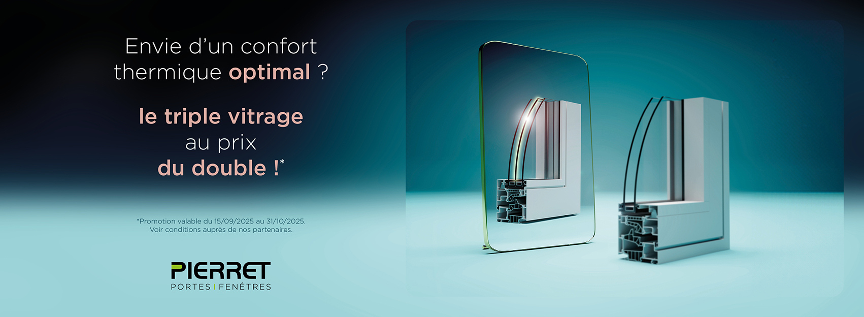 Référent de la marque Pierret nous vous proposons des menuiseries sur mesure disponibles en PVC, Aluminium, Bois, Mixte Bois/Aluminium dans un large choix de couleurs.